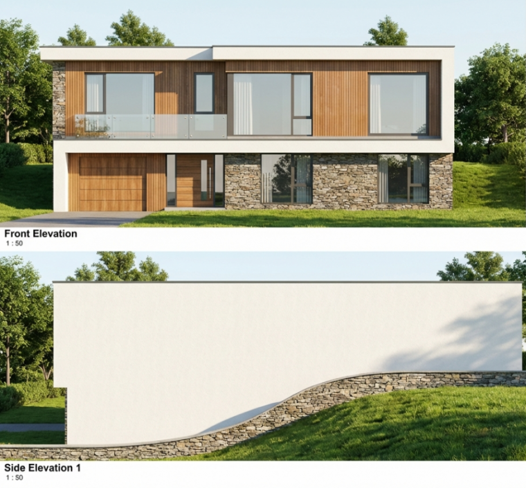 Facing site challenges such as steep terrain and planning constraints, we embraced a bespoke approach—introducing split-level homes, extensive glazing, and a contemporary material palette that reflects the coastal and Lakeland setting. Flat roofs maintain sightlines, ensuring views remain uninterrupted for all.